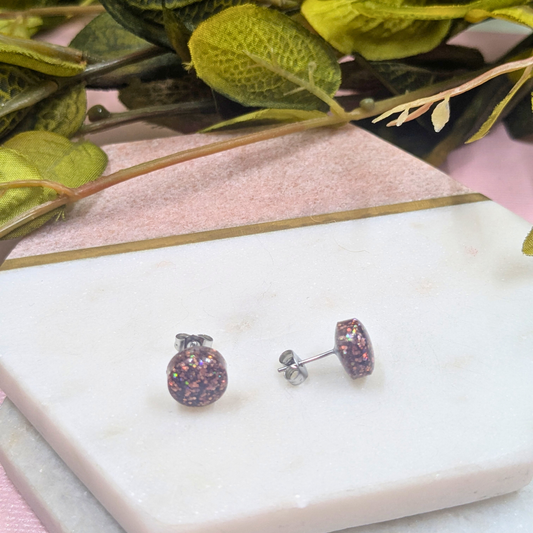 Bridget Brown Glitter Small Resin Stud Earrings | Subtle Sparkle by Created By Lau