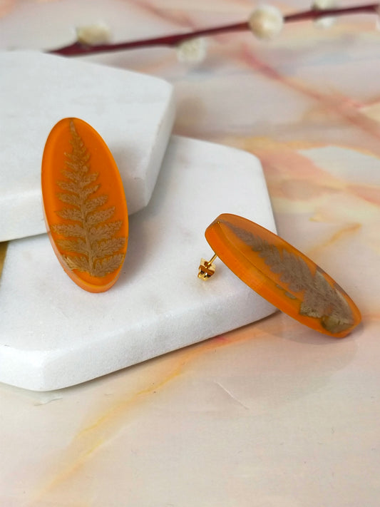 "Khloe" Fern Real Leaves on Pumpkin Oval Studs