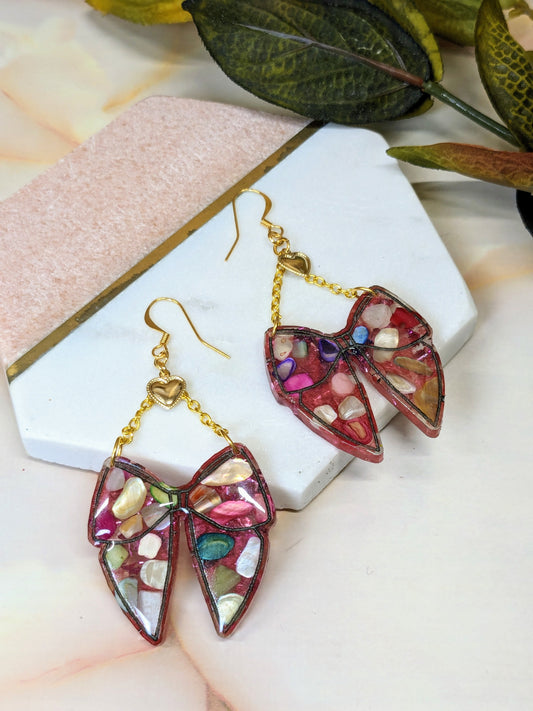 "Mira" Real Stones Resin Chain Bow Dangle with heart charm