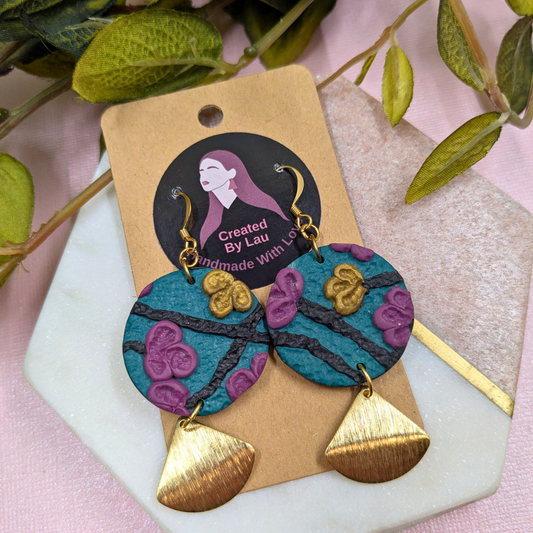 Scarlett Green Flora Polymer Clay Earrings - Brass Charm Handmade UK
