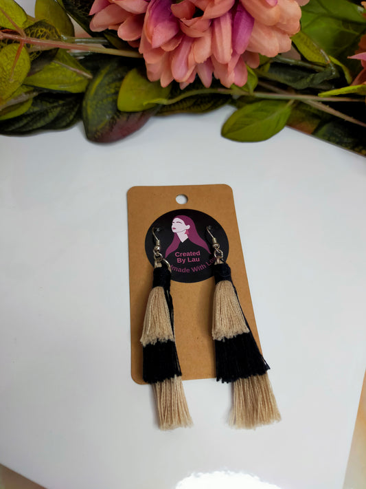 "Sophia" Beige & Black 2 Colour 3 Tiered Tassel Earrings Silver Plated