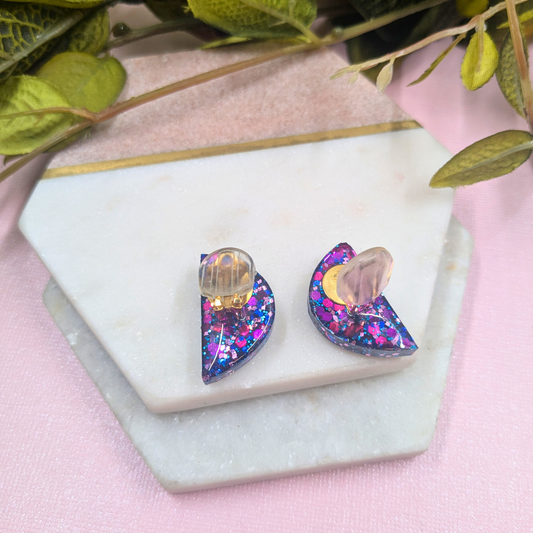Raelynn Half Circle Glitter Resin Clip-On Earrings | Modern Jewellery by Created By Lau