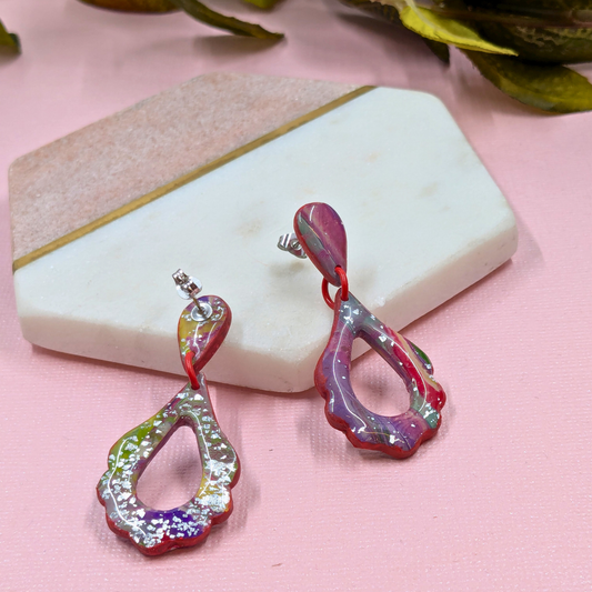 Billie Rainbow Coloured Mica & Glitter Wavy Resin Dangles | Bold & Bright by Created By Lau