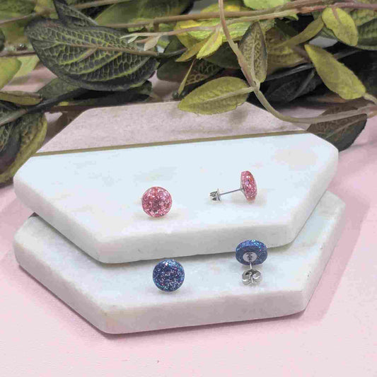 Bridget Green & Ruby Glitter Mix Small Resin Stud Earrings