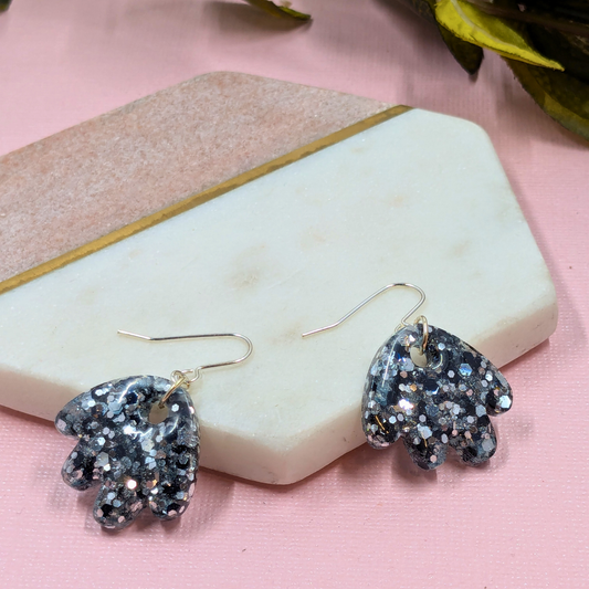 "Renee" Black & Sliver Glitter Mix Petal Dangle Earrings