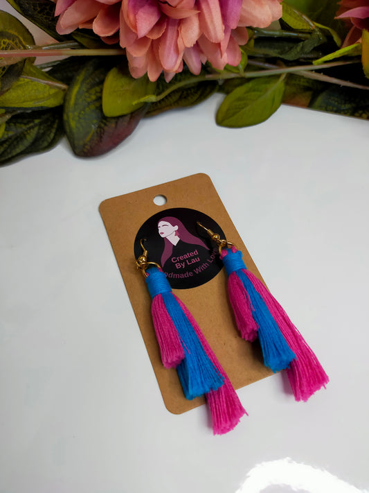 "Nova Mini" Aqua & Pink 2 Colour Tassel Earrings