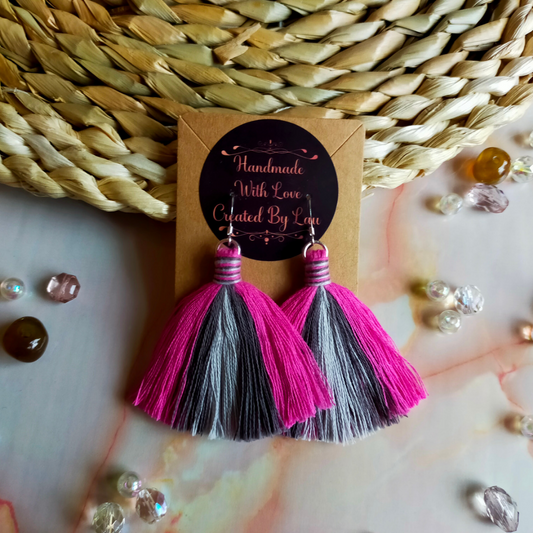 Oaklyn Pink Metallic Macramé Tassel Earrings - Recycled Yarn UK