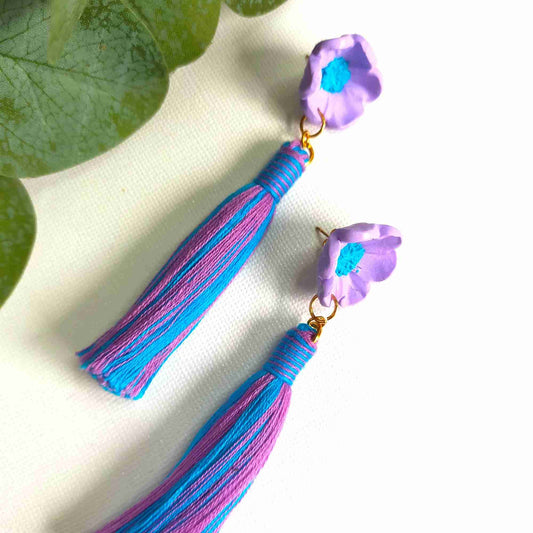 "Blossom" Purple Blue Mix Flower Polymer Clay Tassel