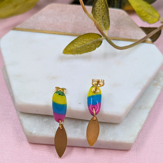 "Jodi" Rainbow Stripe Pattern Small Dangle with Mini Marquise Charm
