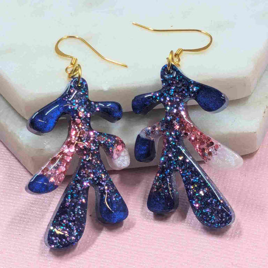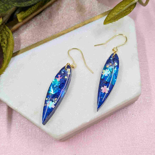 Dakota Blue Glitter Leaf Dangle Earrings - Handmade Organic Jewellery UK