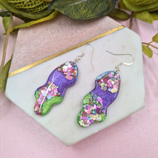 Billie Rainbow Coloured Mica & Glitter Wavy Resin Dangles | Bold & Bright by Created By Lau