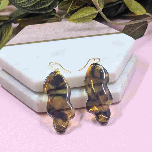 Billie Tortoiseshell Effect Wavy Resin Dangle Earrings - Gold Plated - Handmade Yorkshire