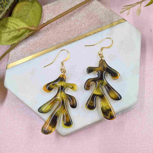Renee Tortoiseshell Petal Dangle Earrings - Handmade Resin UK