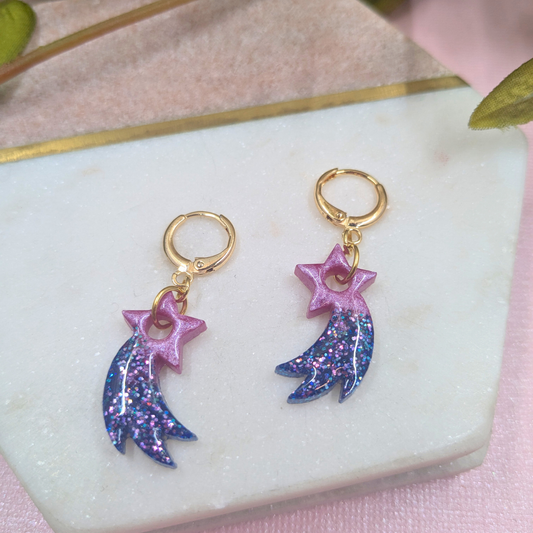 Ceres Circle Mystical Star Glitter Resin Dangle Earrings | Celestial Collection by Created By Lau