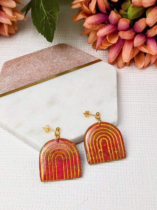 "Jayla" Pink Marble Detailed Arch Polymer Clay Dangle Earrings