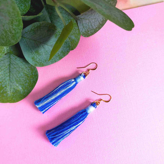 "Cora" Blue Ombre Cotton Macrame Fringe Tassel Earrings