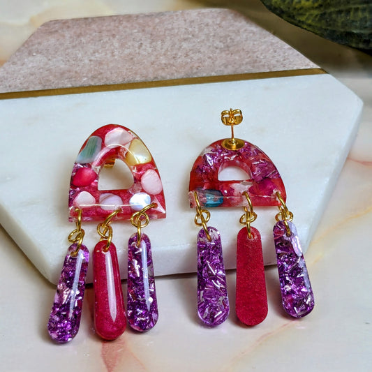 Real Stone & Pink Foil Resin Dangle Earrings (Jagger) | Created By Lau
