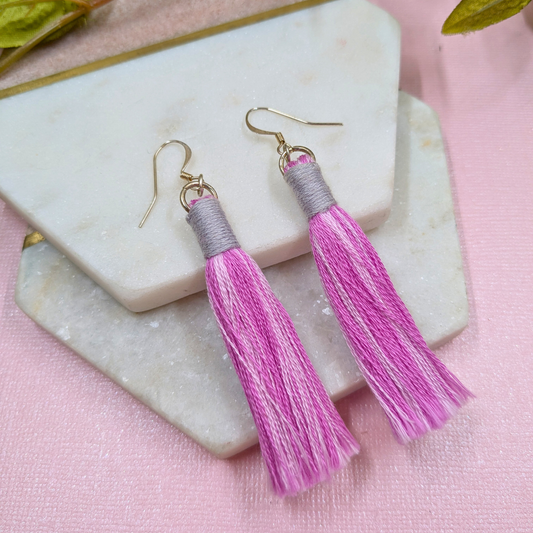 "Juliet" Pink Grey Mix Loop Tassel Earrings