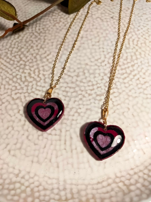"Caro" Pink & Black Resin Heart Necklace