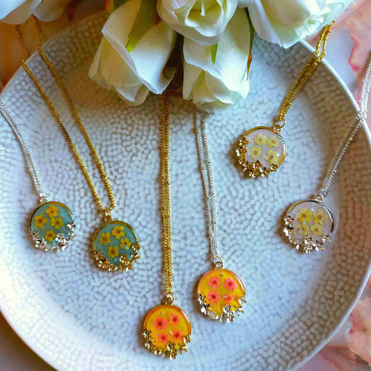"Lucia" Pink Blossom on Yellow Resin Flower Necklace