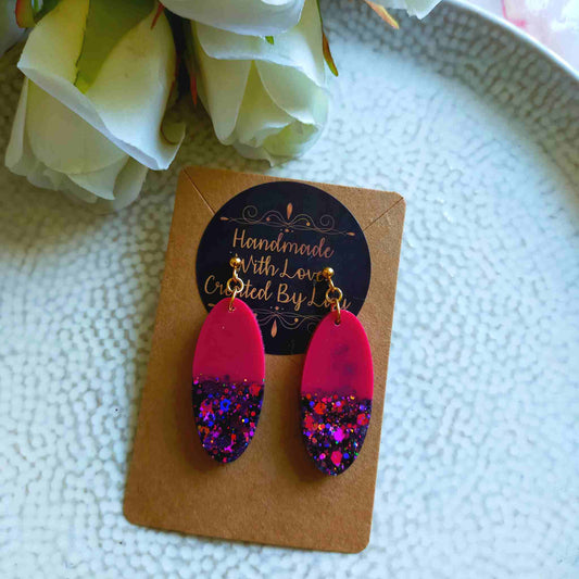 "Mae" Oval Pink Glitter Resin Dangle Earrings