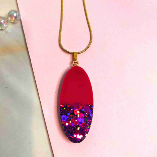 "Mae" Oval Pink Glitter Resin Necklace