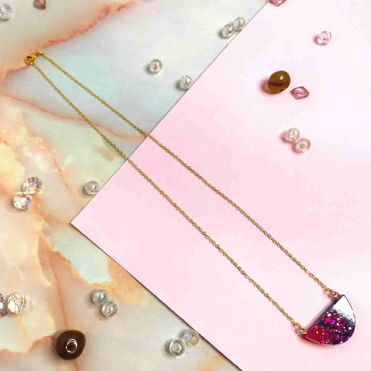"Raelynn" Half Circle Pink, Blue & Glitter Resin Necklace