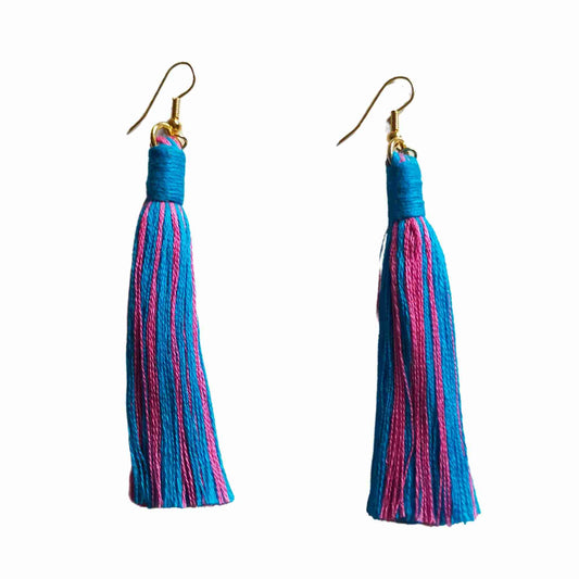 "Aurora Maxi" Turquoise Pink Boho Long Length Tassel Earrings