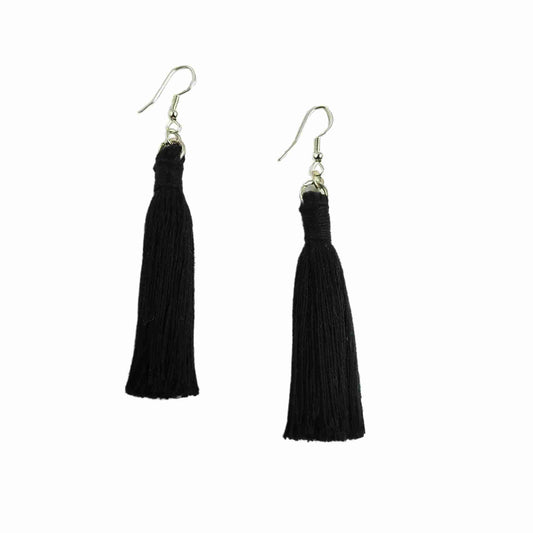 "Lia" Black Silver Plated Macrame Tassel Earrings