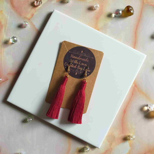 "Lia" Burgundy Gold Plated Cotton Macramé Tassel Earrings