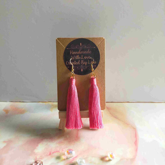 "Lia" Coral Gold Plated Cotton Macramé Tassel Earrings