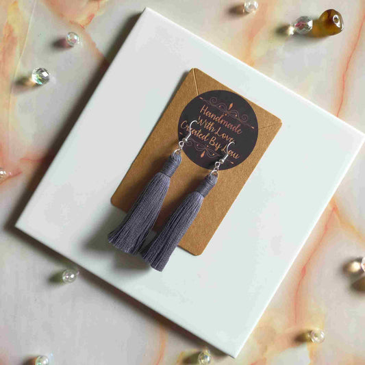"Lia" Grey Silver Plated Cotton Macramé Tassel Earrings