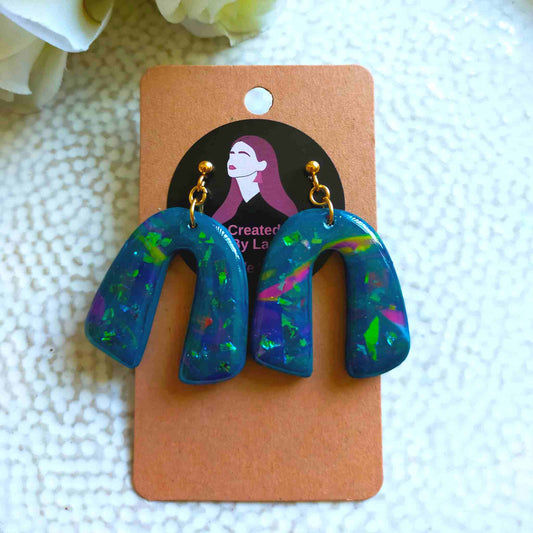 "Martha" Blue Iridescent Polymer Clay Arch Earrings