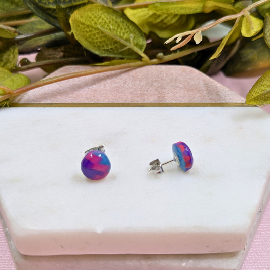 "Dottie" Marble Effect Polymer Clay Tiny Studs | Handmade Minimalist Earrings
