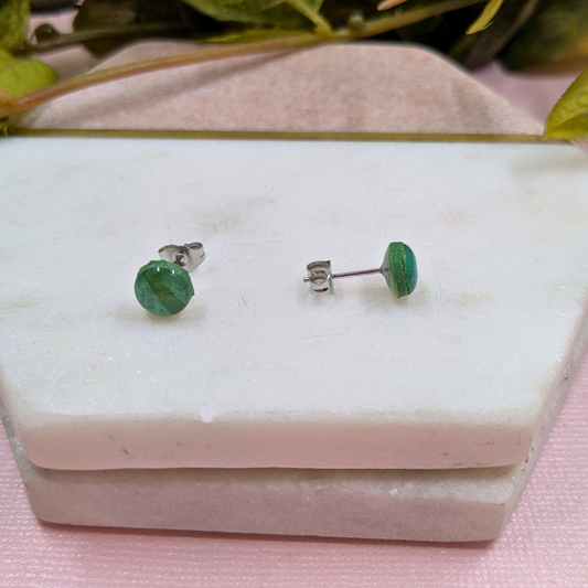"Poppy" Green Blue Marble Circle Stud Earrings