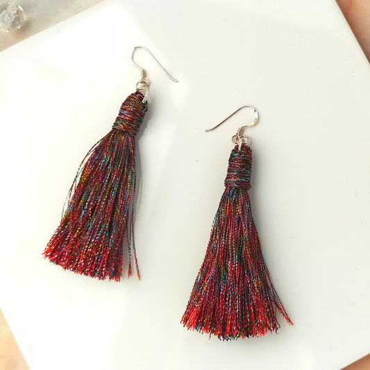 "Cora" Sterling Silver Bright Coloured Tassel Earrings