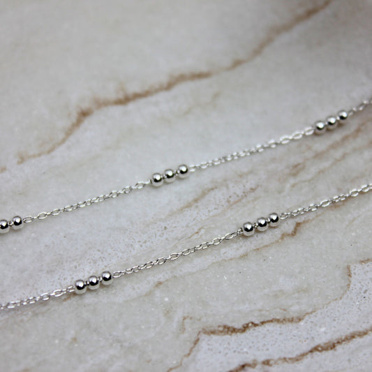 "Budapest" Sterling Silver Three Bead Cable Chain