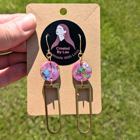 Beatrice Pink Multi Dottie Circle Dangle Earrings | Boho Brass Charm by Created By Lau