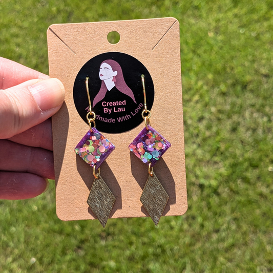Colette Purple Multi Dottie Glitter Diamond Dangle Earrings | Brass Charm by Created By Lau