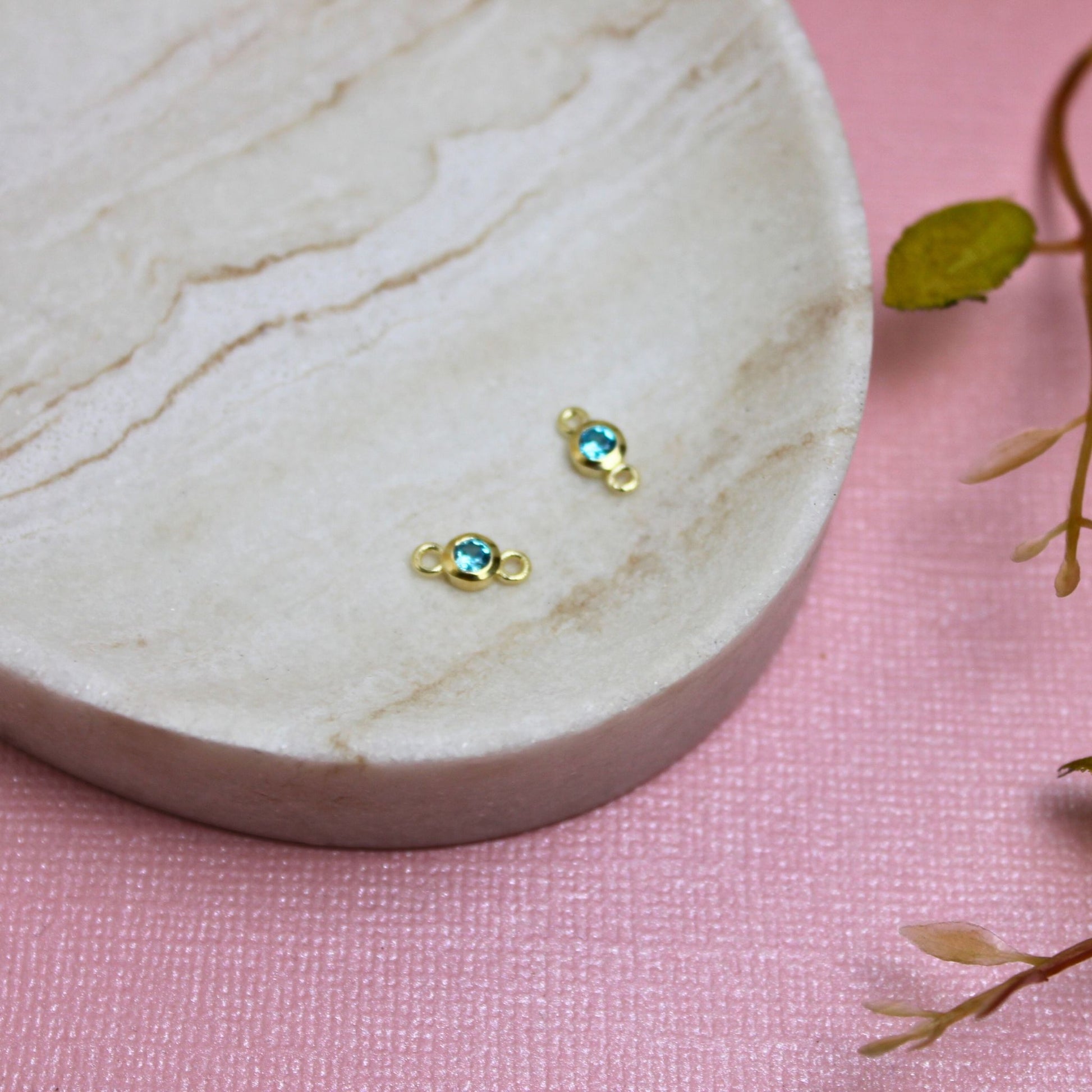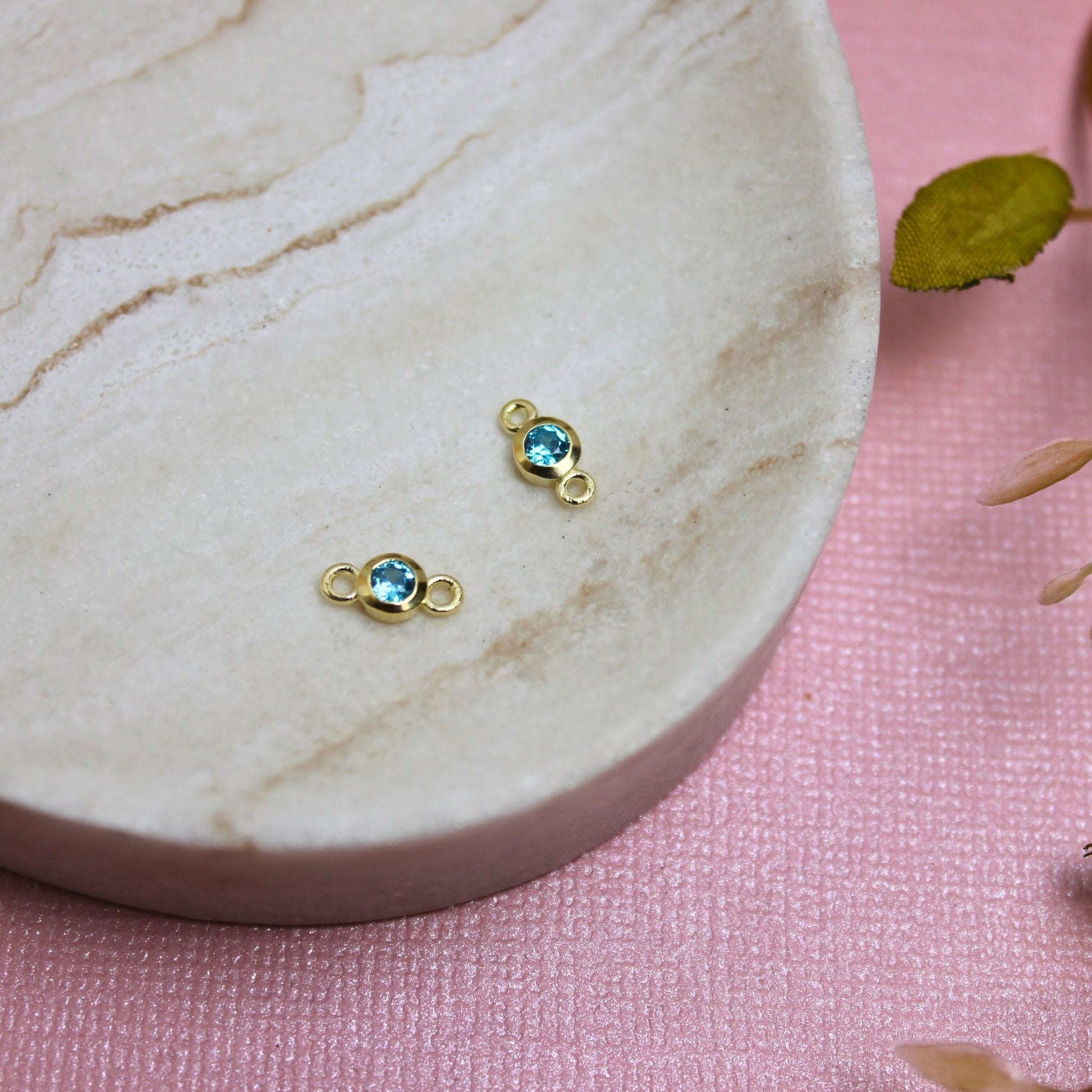 14ct Gold Vermeil 4mm CZ Blue Birthstone March Crystal Connector