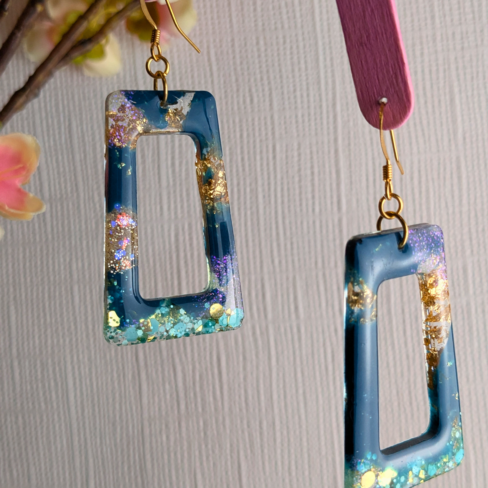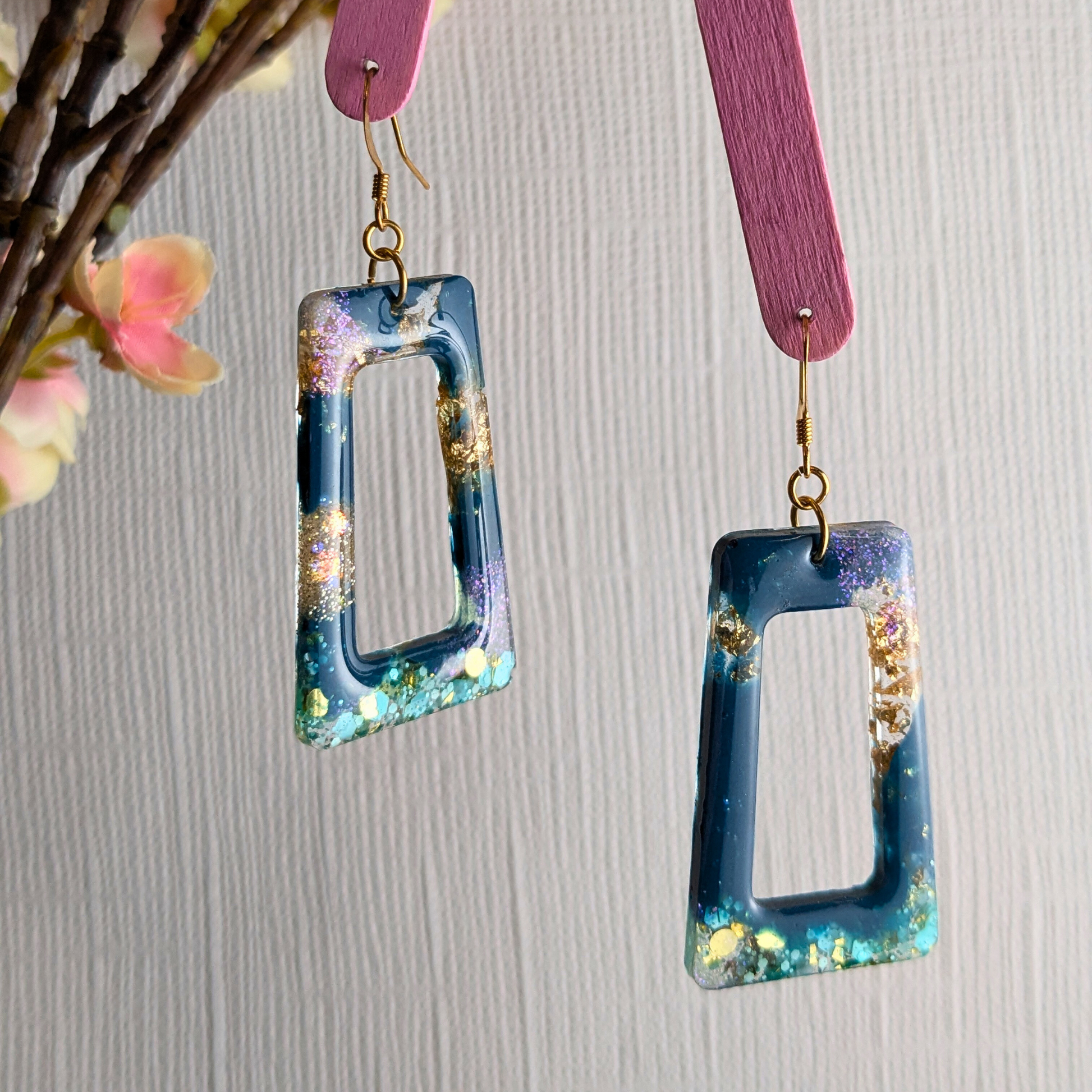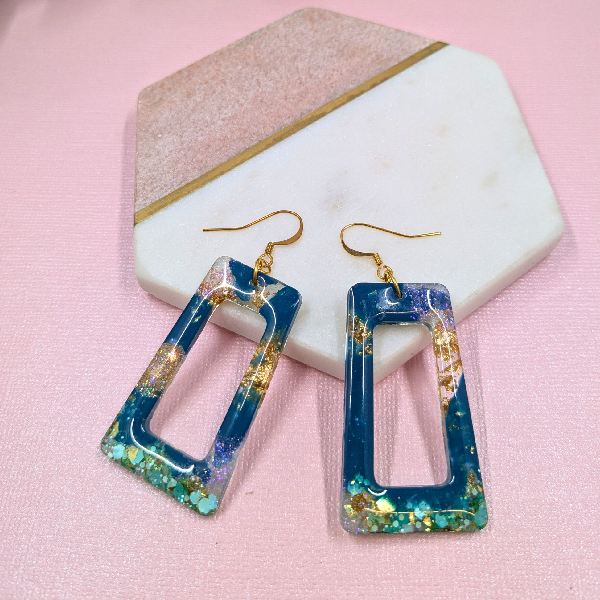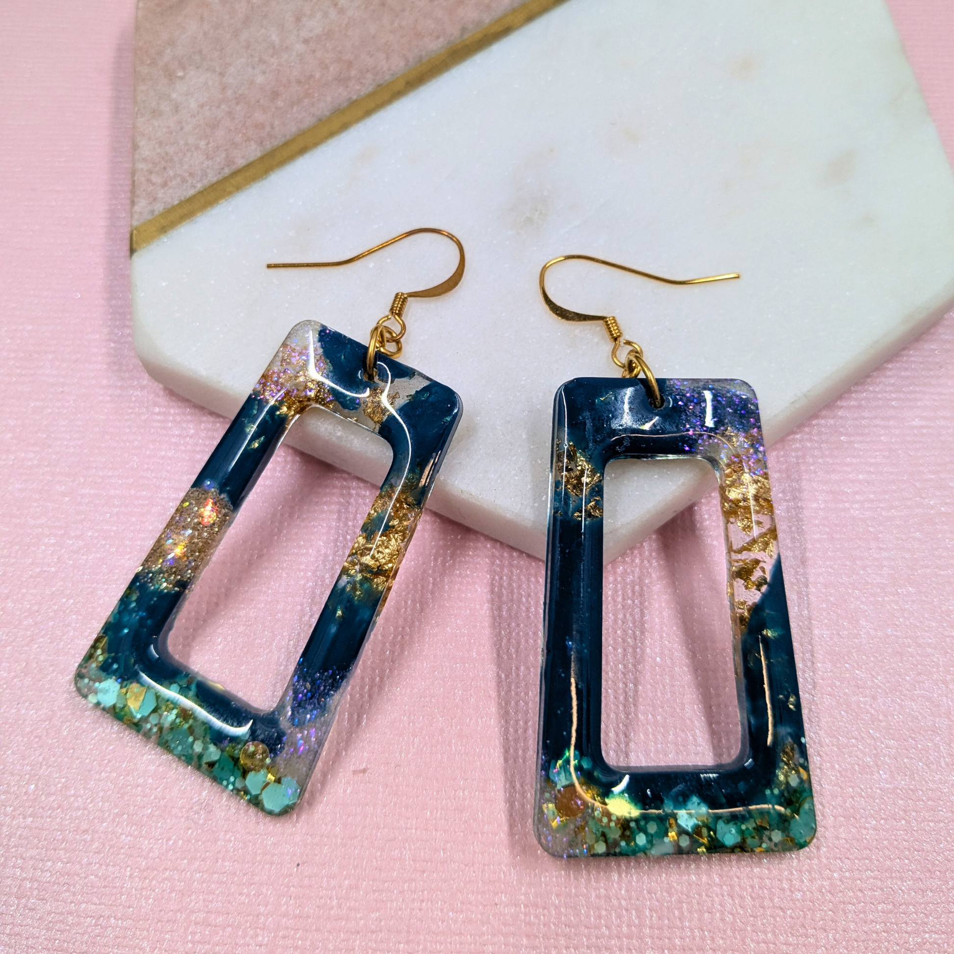 "Adeline" Teal & Gold Trapezium Cut Out Resin Dangle Earrings