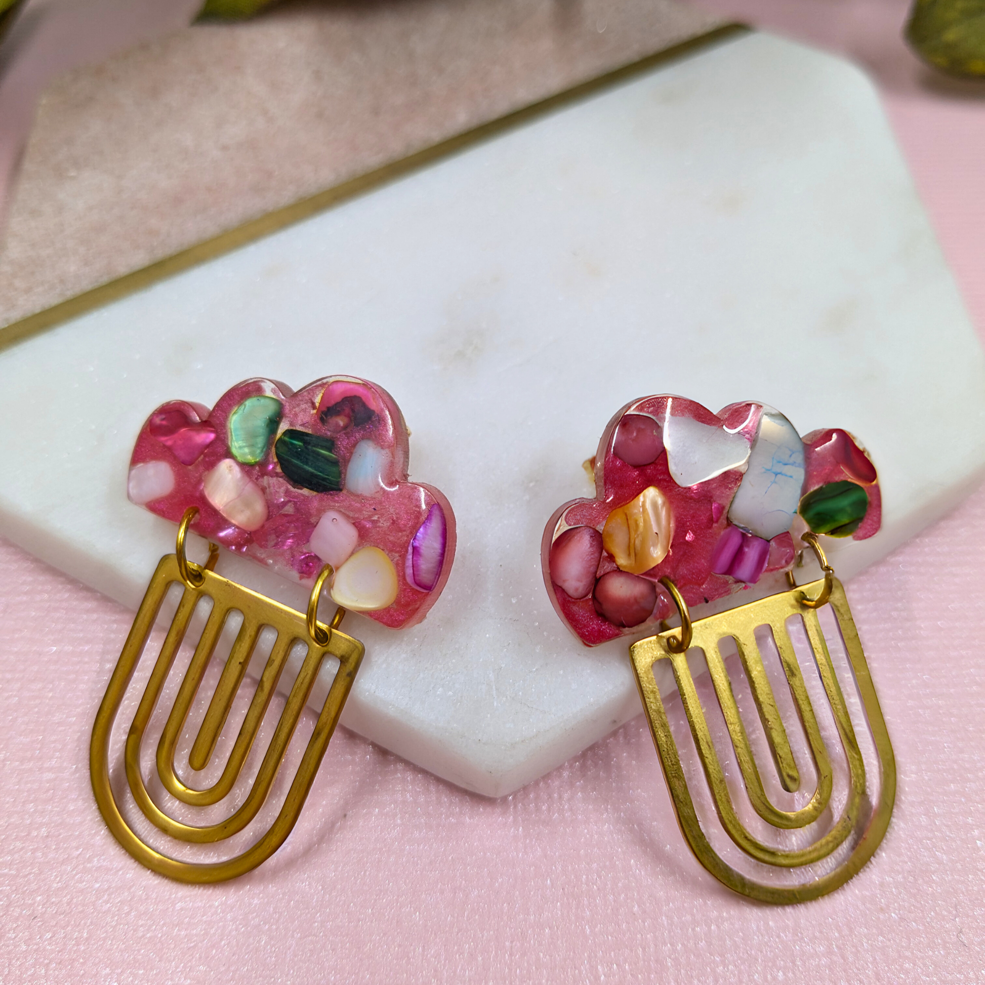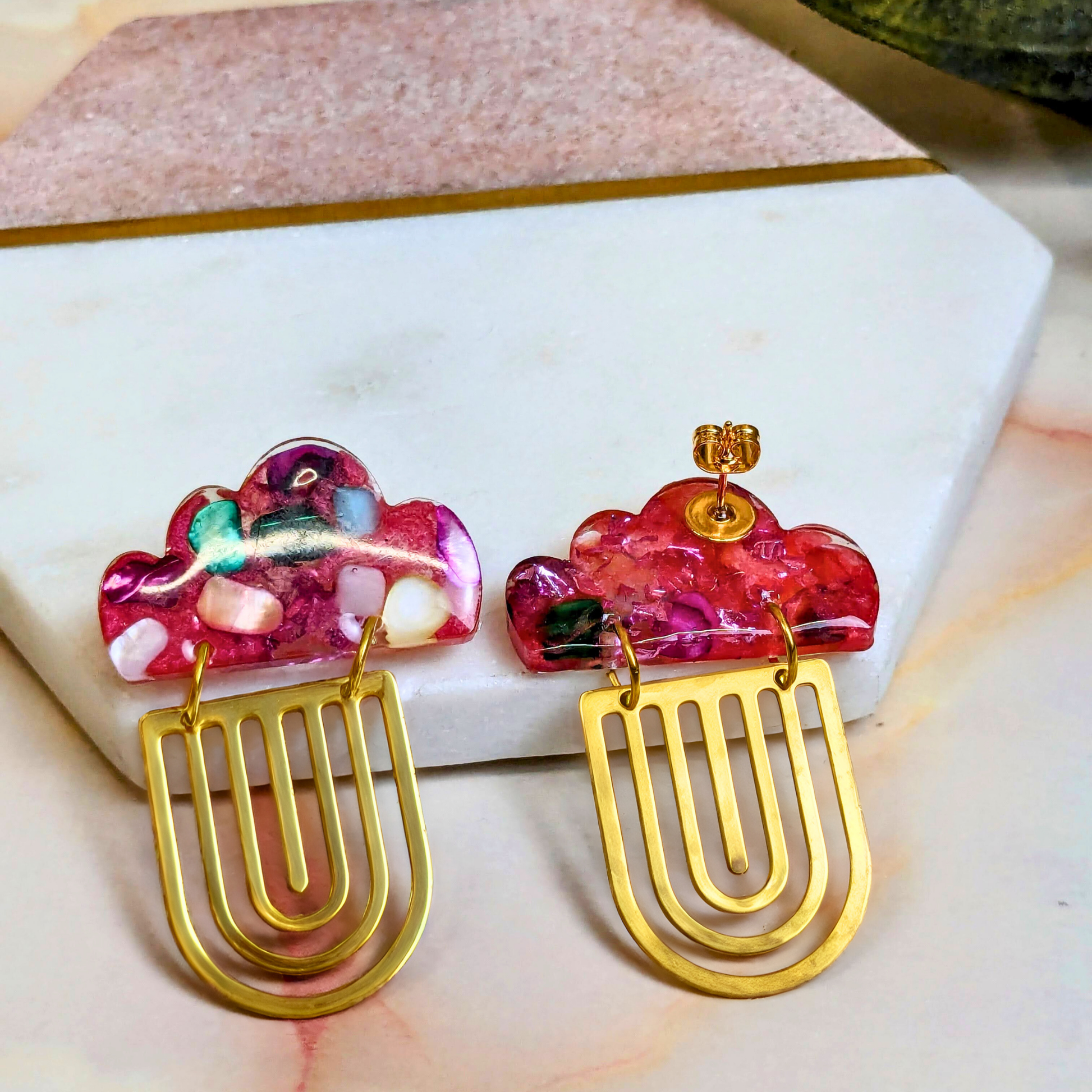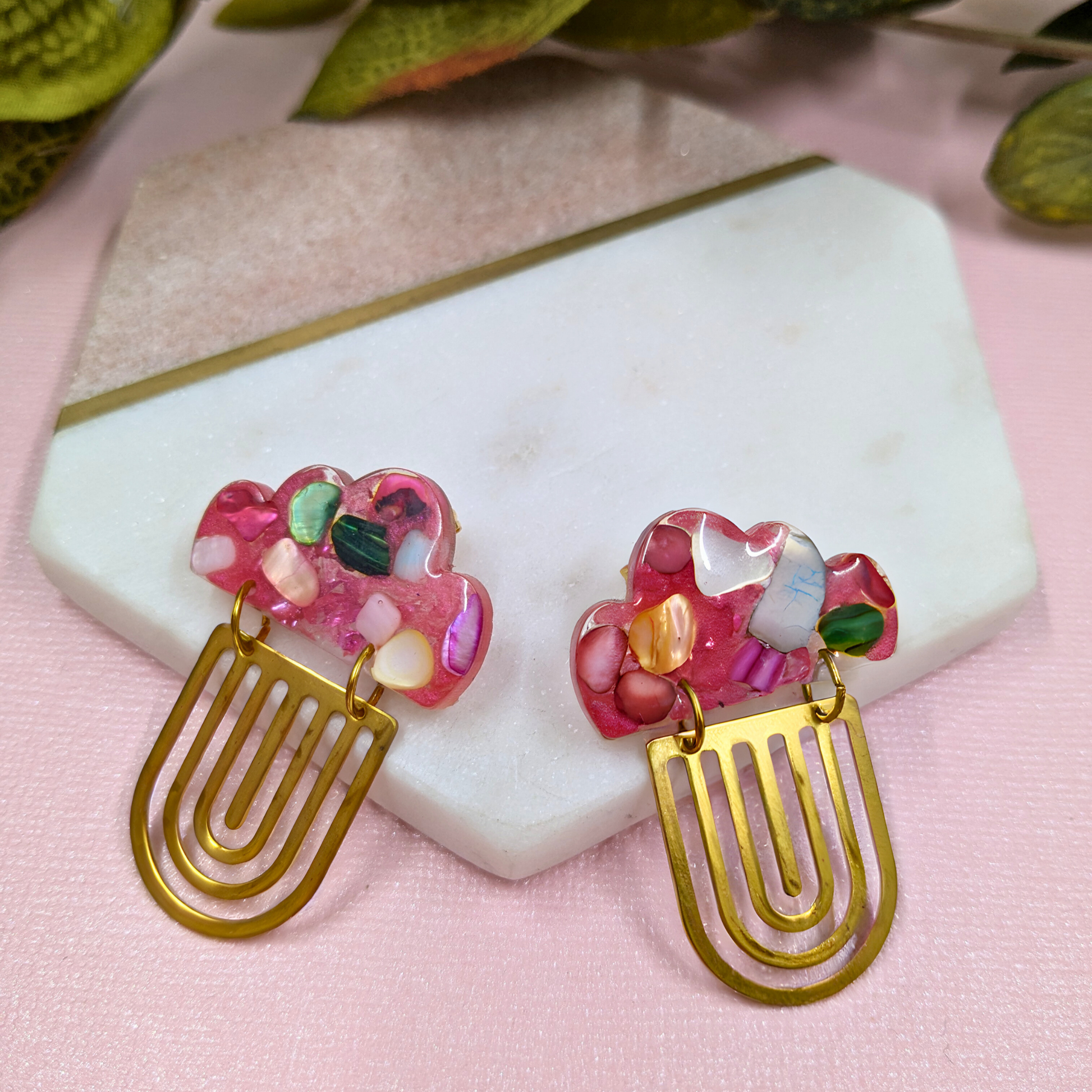 "Alma" Cloud Real Stones Resin Dangle with Brass Rainbow Charm