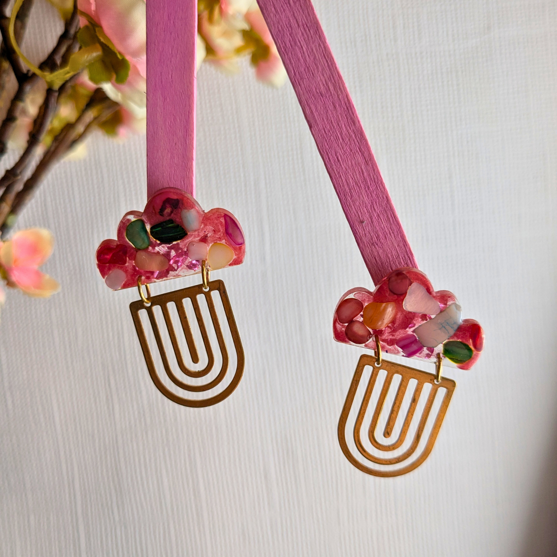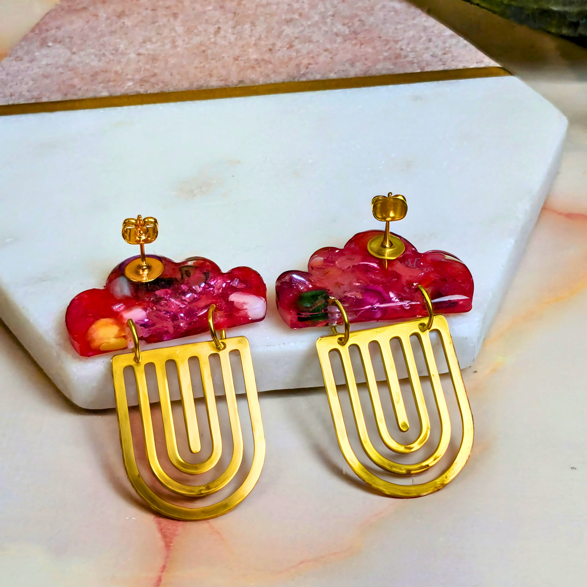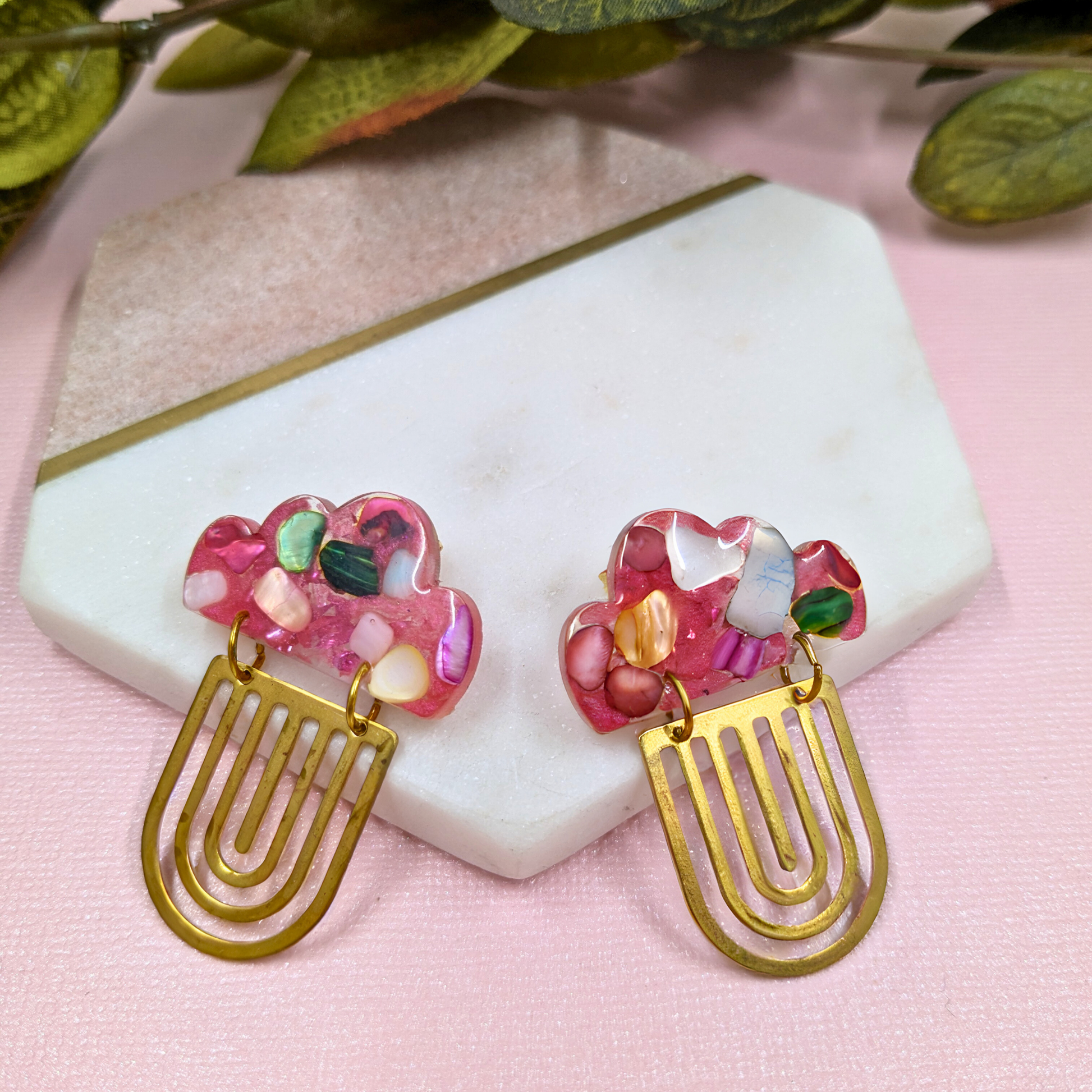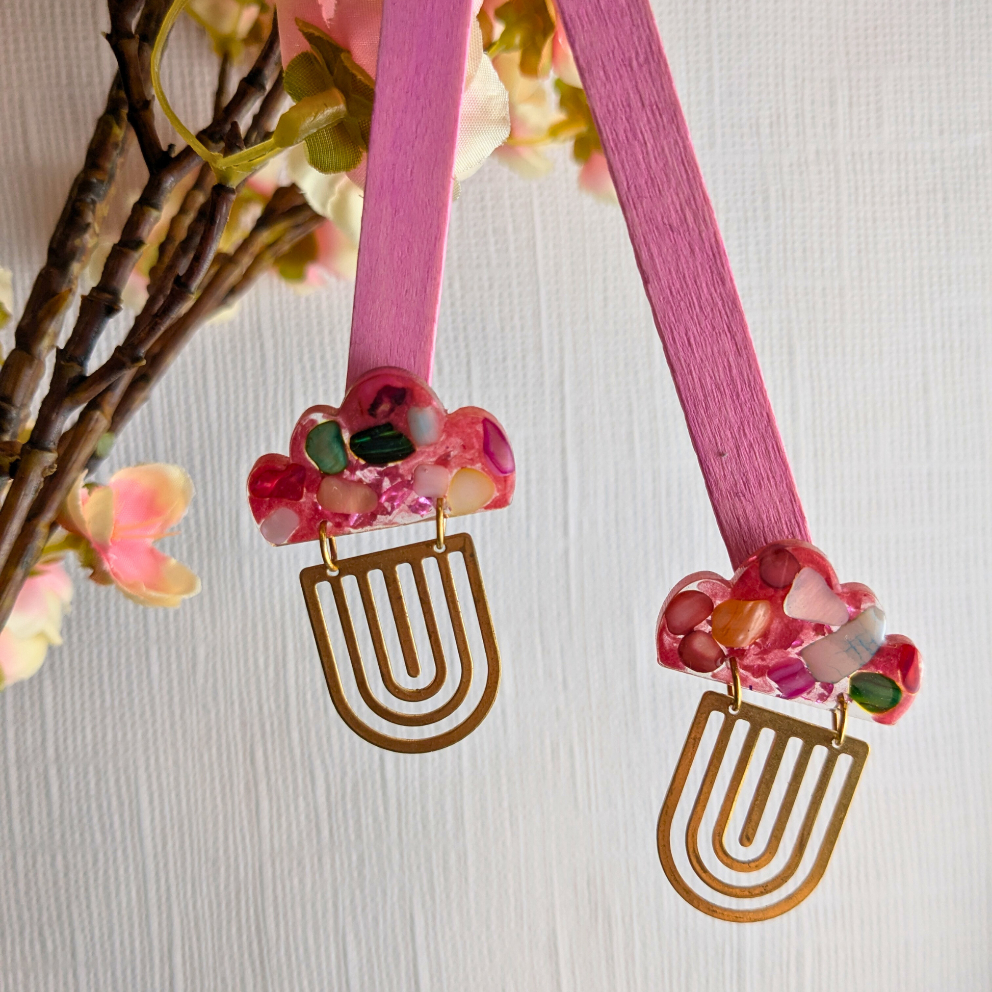 "Alma" Cloud Real Stones Resin Dangle with Brass Rainbow Charm