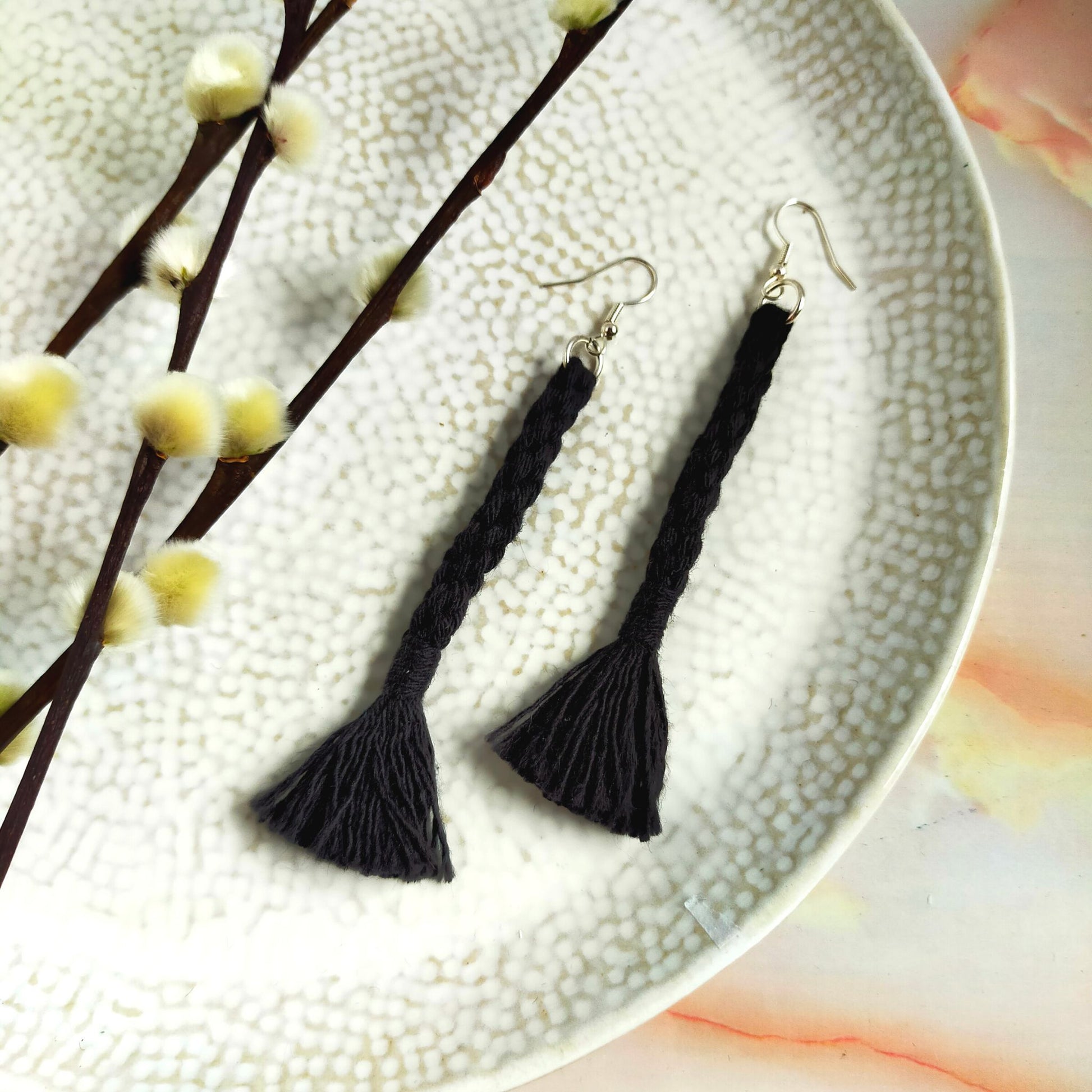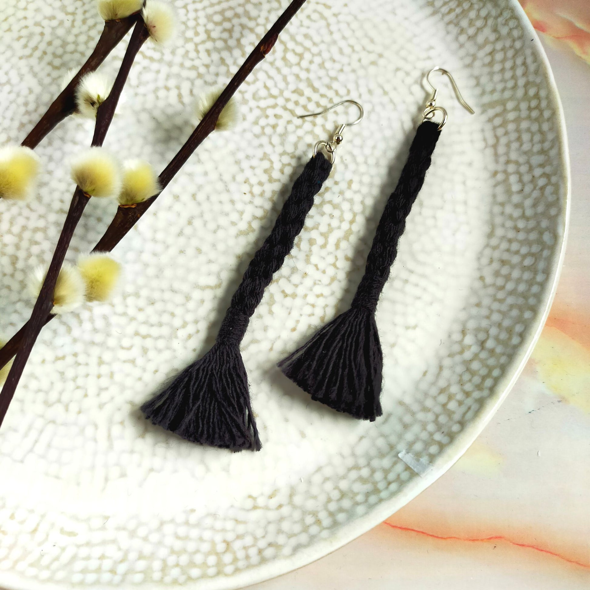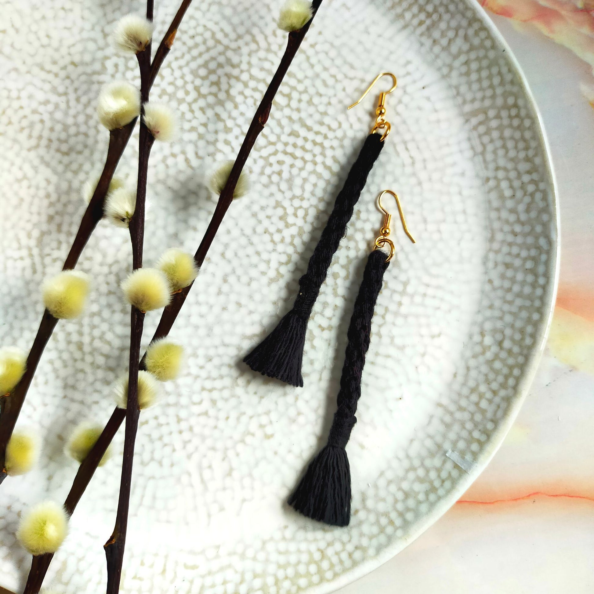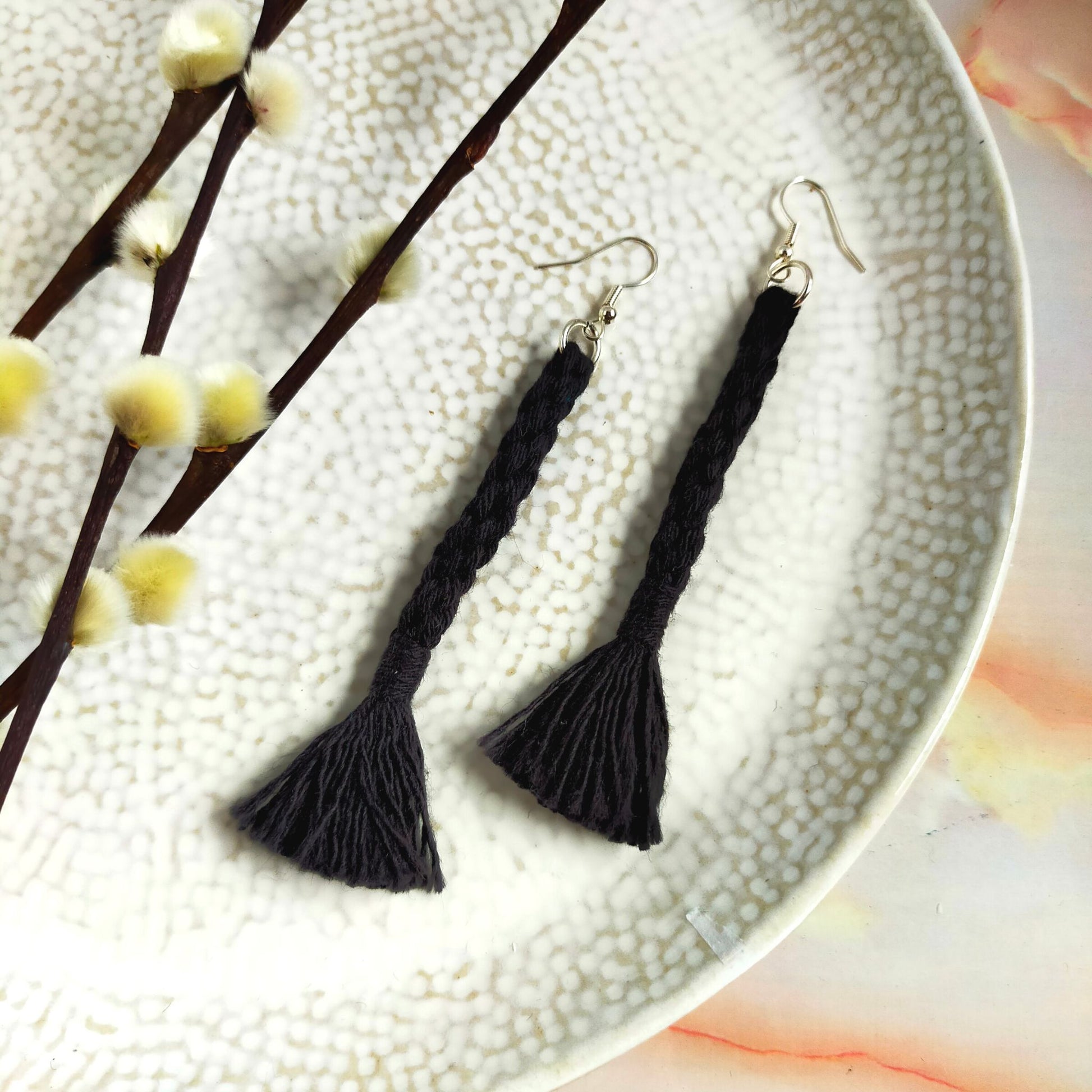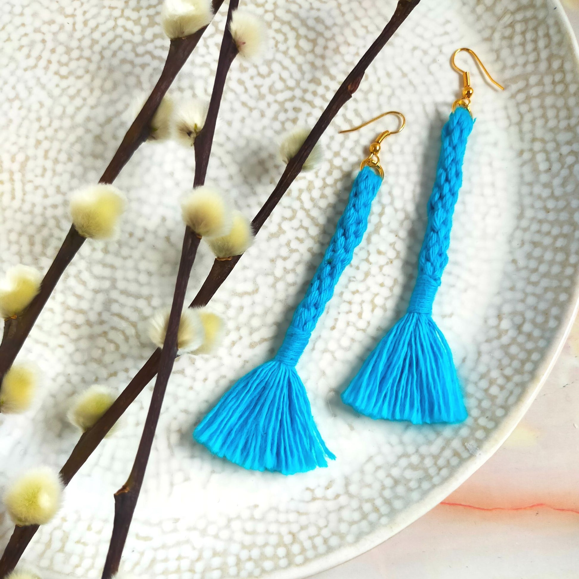 These handmade tassel earrings are a must-have for any fashion-forward woman! The "Bree" features a unique and stylish woven tassel design with a self-coloured wrap. Made from 100% cotton, each tassel is created with care and features an earring hook. These lightweight earrings will elevate any outfit and also make a great gift. Measurements: Tassel length: 8.5 cm Earring length: 11 cm. Available in Gold Plated or Silver Plated.