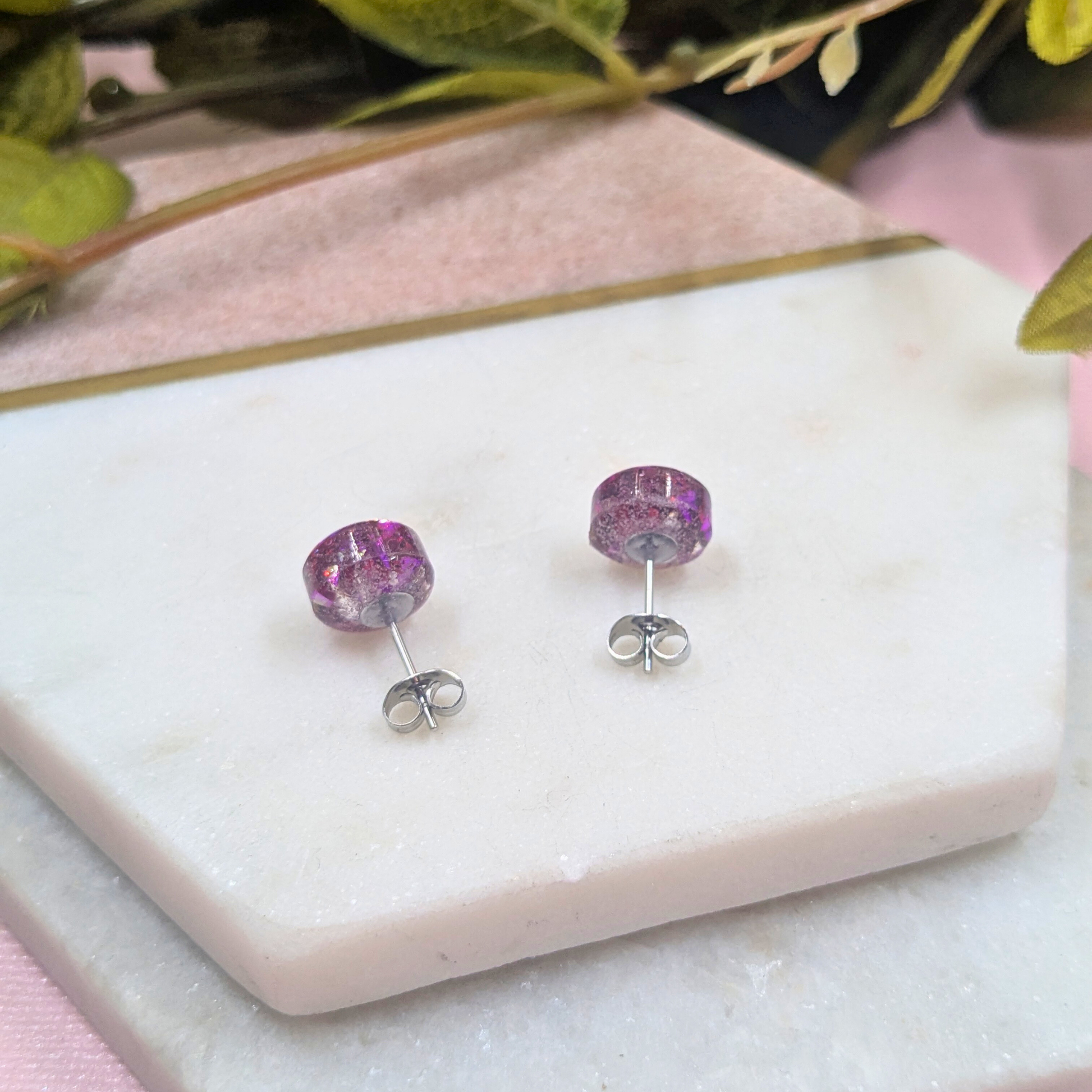 Bridget Cerise Glitter Small Resin Stud Earrings | Vibrant Sparkle by Created By Lau