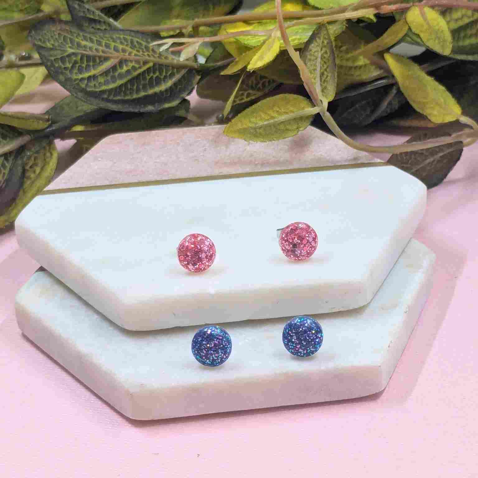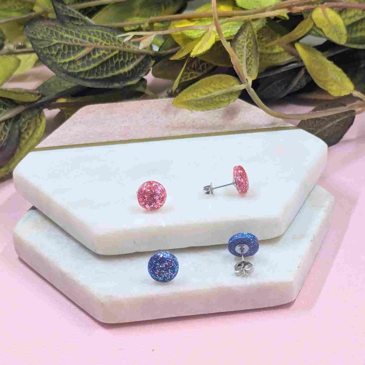 Add a touch of delicate detail to your everyday with our "Bridget" Floral Moroccan small resin stud earrings! Lovingly handmade in our Shipley studio, right here in West Yorkshire, these little beauties come in two gorgeous options to suit your style: a captivating Blue Pink Glitter mix or a sweet all-over Pink Glitter.