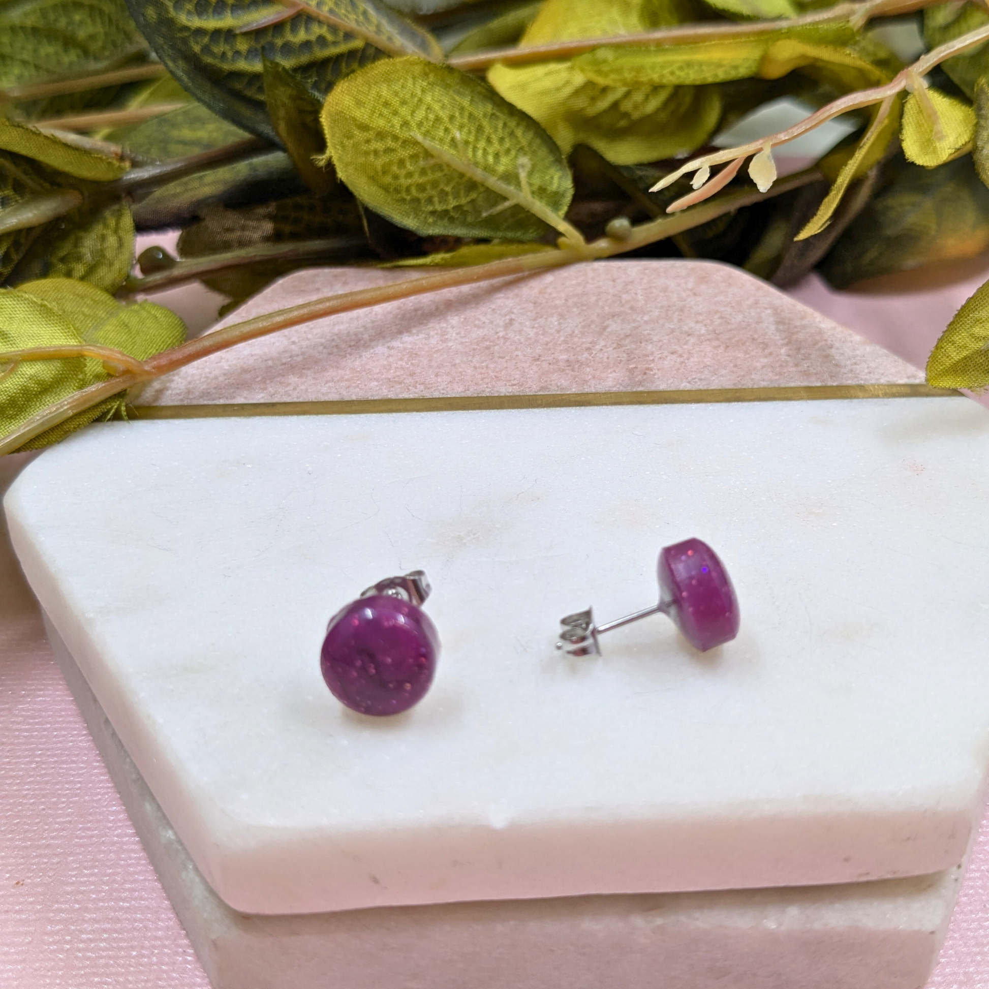 Each gorgeous 1cm stud is meticulously made from premium resin, showcasing a stunning, rich mulberry wine colour that exudes luxury and depth. Despite their dainty size, they offer a powerful pop of sophisticated colour, making them a versatile accessory for both everyday wear and dressing up for an evening out.