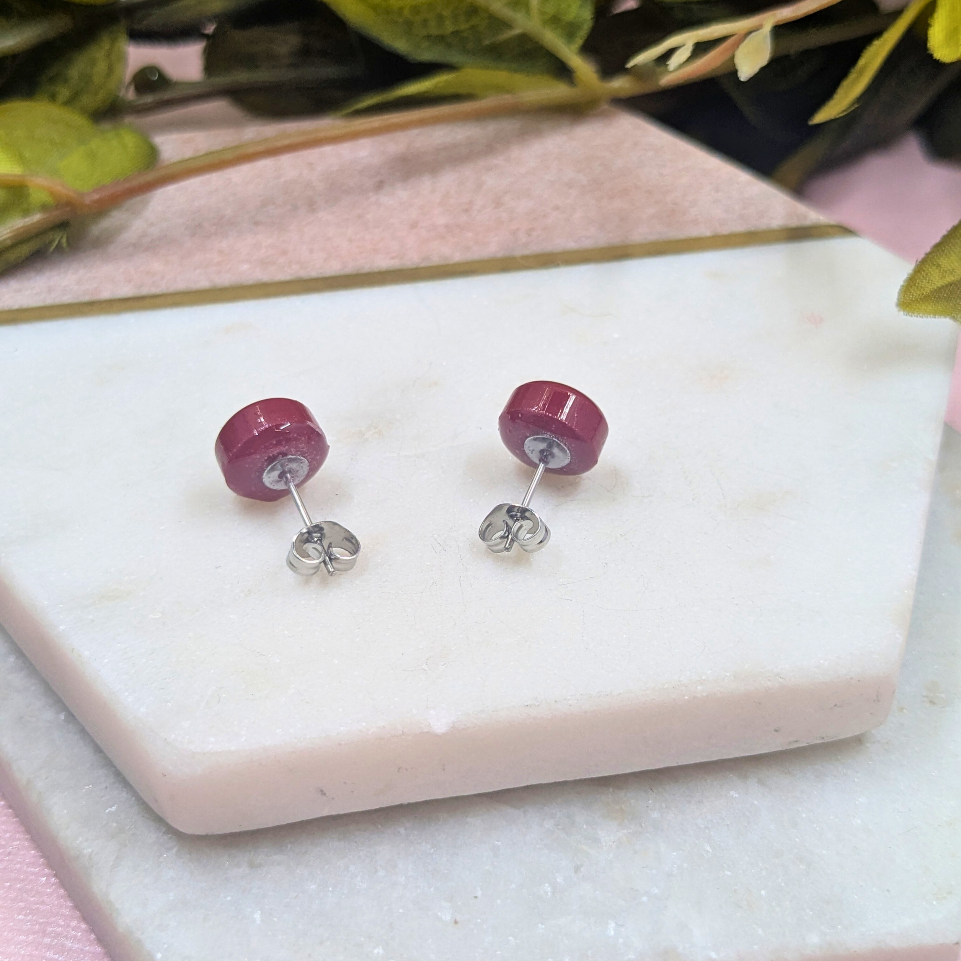 Each gorgeous stud is meticulously made from premium ruby red resin, creating a rich, opaque finish that truly stands out. Despite their compact 1cm size, they pack a mighty punch of colour, making them a versatile accessory for both everyday wear and dressing up.
