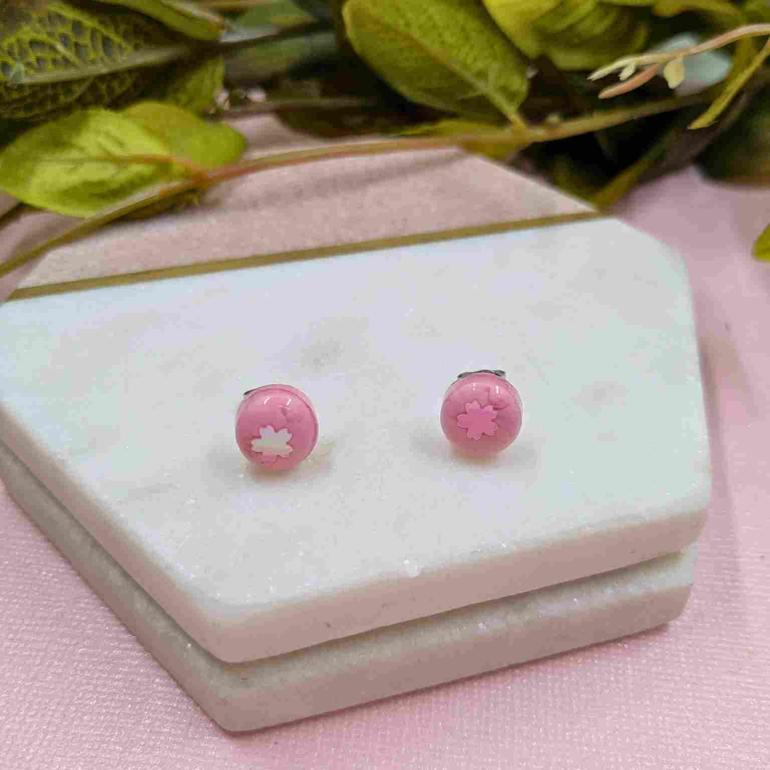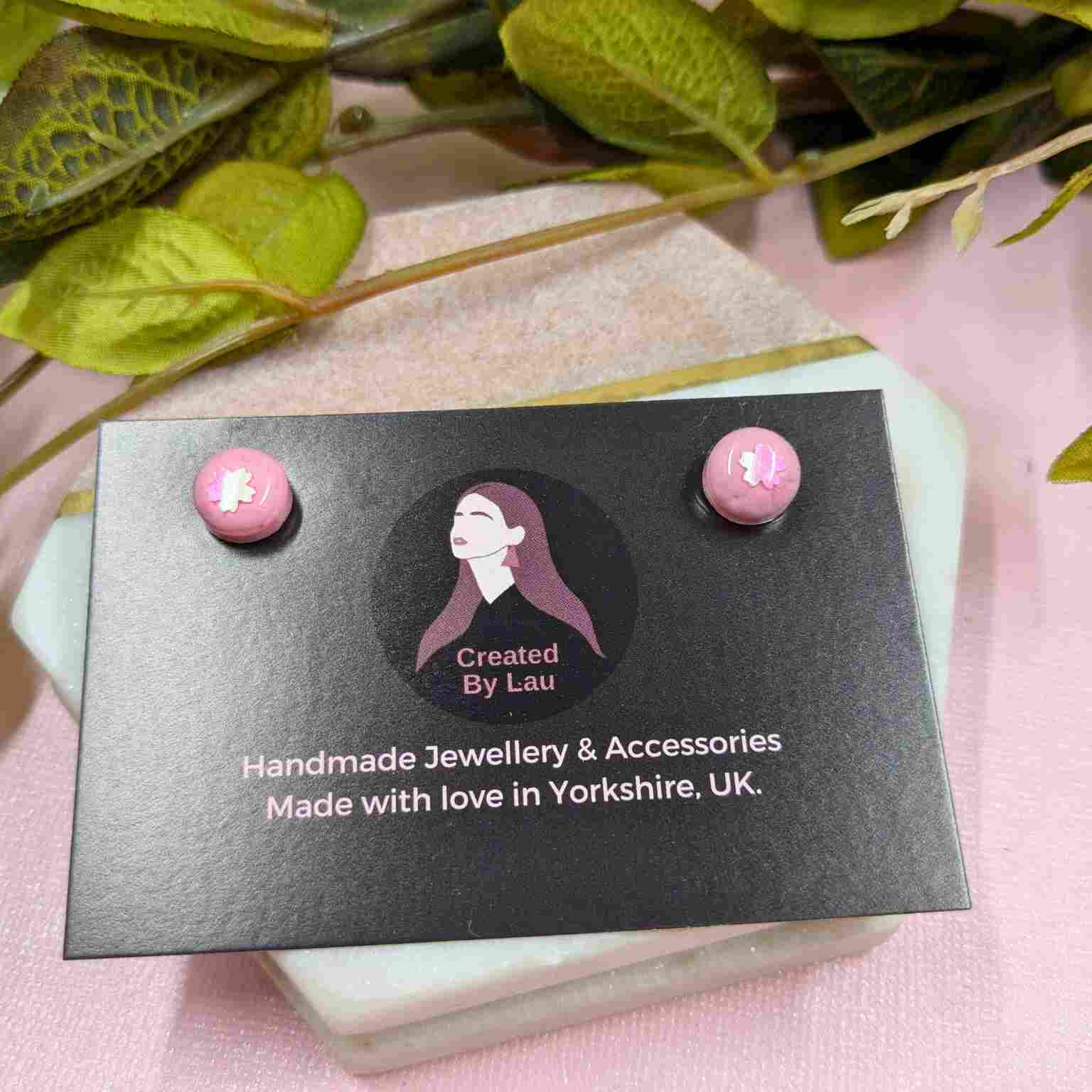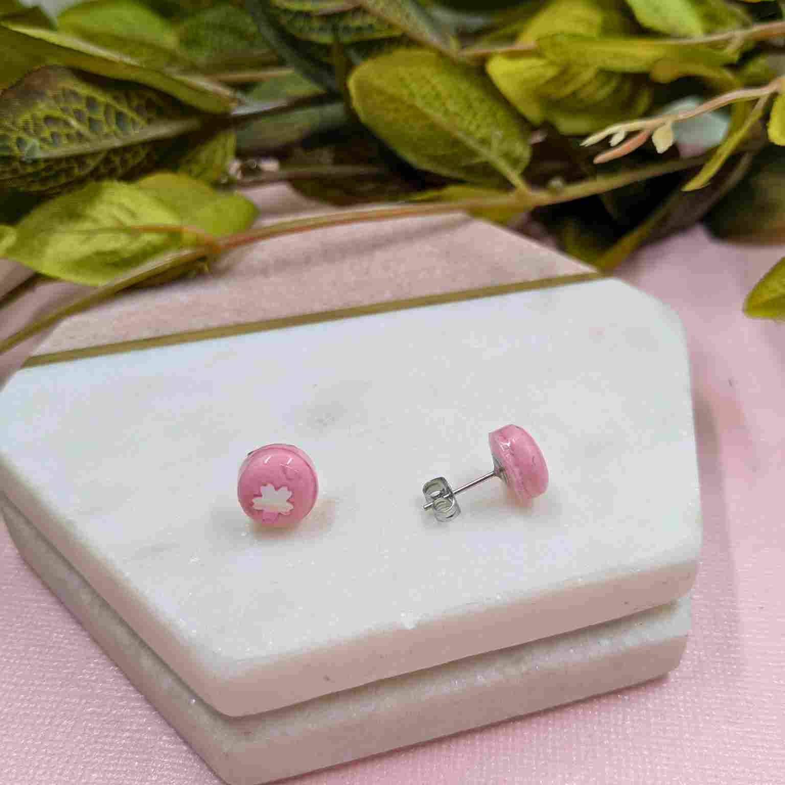 Bridget Sequin Flower Pink Resin Stud Earrings - Handmade UK