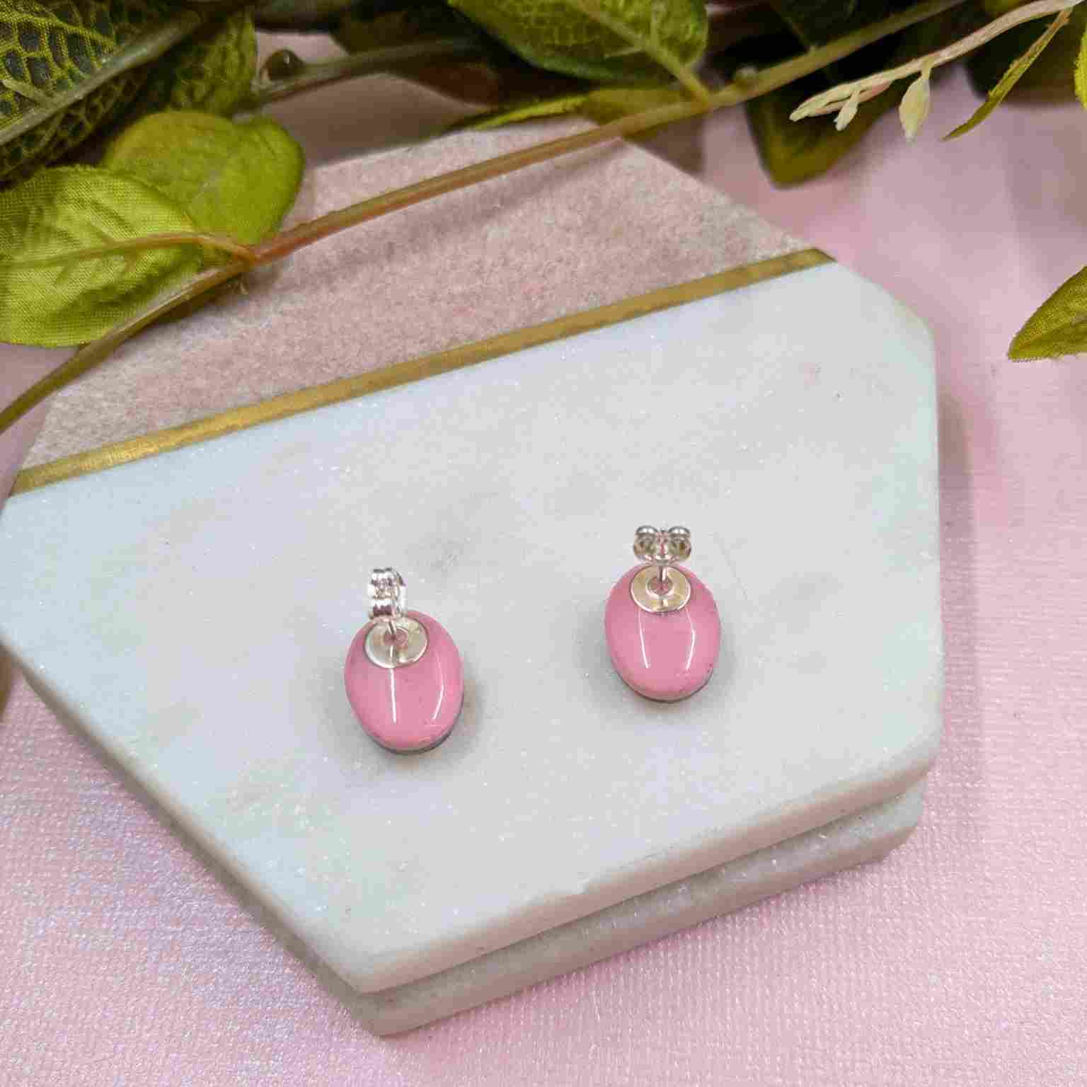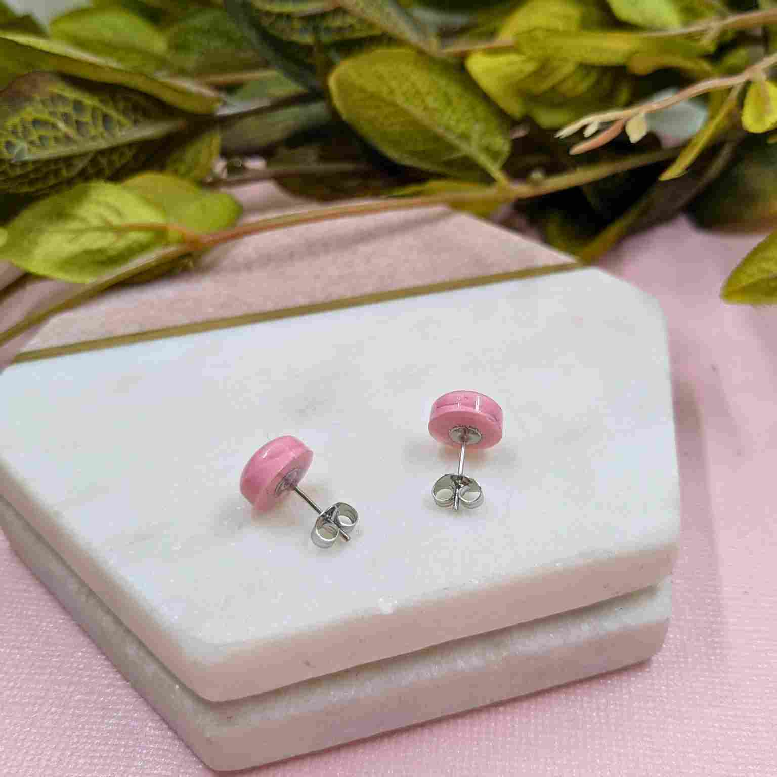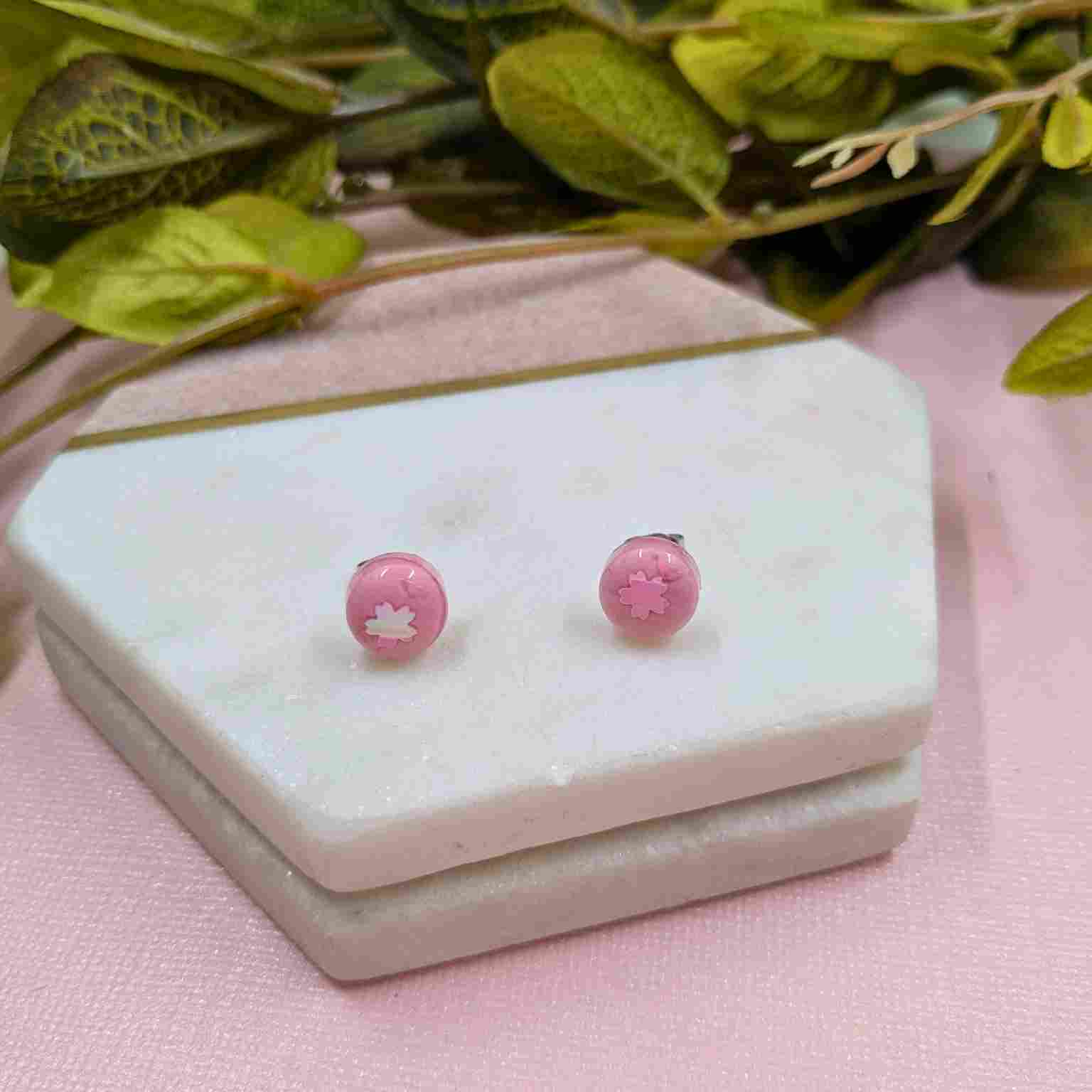 Bridget Sequin Flower Pink Resin Stud Earrings - Handmade UK
